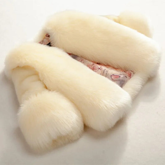Girls Elegant Plush Faux Fur Coat