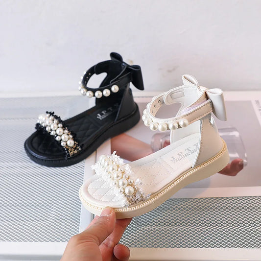 Elegant Princess Pearls and Bows Sandals