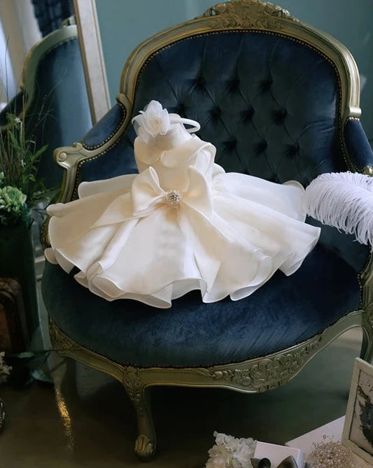 Elegant White Satin Flower Girl Dress